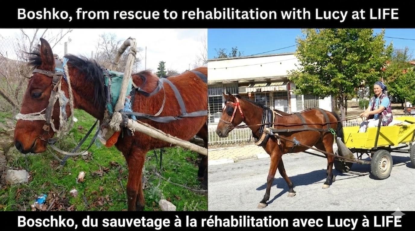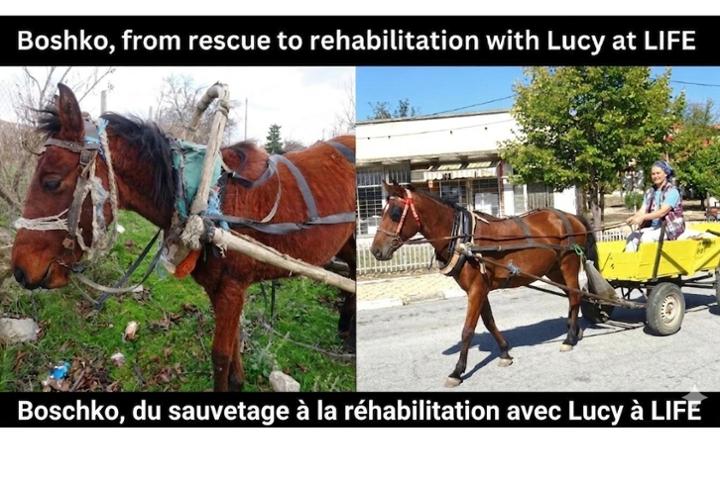 Une nouvelle vie commence pour Boshko ce mois-ci, et je souhaite donc mettre en lumière sa merveilleuse transformation, du sauvetage à la réhabilitation entre les mains de Lucy à LIFE. Les images parlent plus que les mots : veuillez voir la photo ci-dessous.