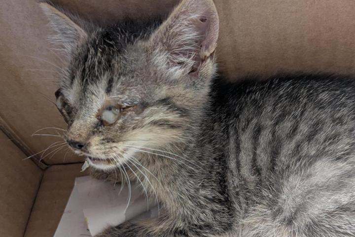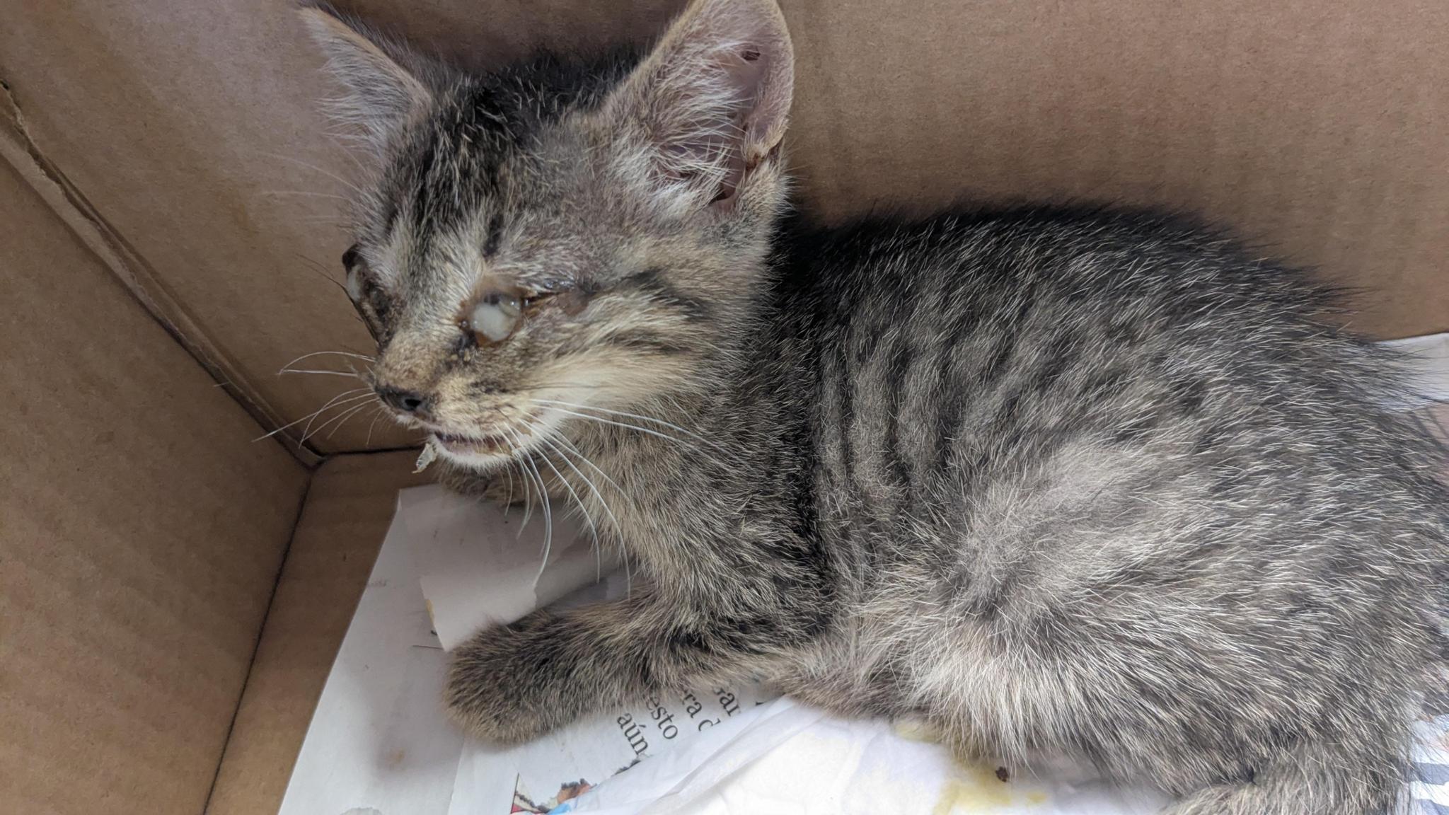 Tuvimos un aviso de bebe con los ojos cerrados llenos de pus...fuimos por ella, parecía que respiraba mal....la llevamos al veterinario y tras varios días ingresado, falleció. Otra niña en el cielo que no ha tenido tiempo apenas de vivir.