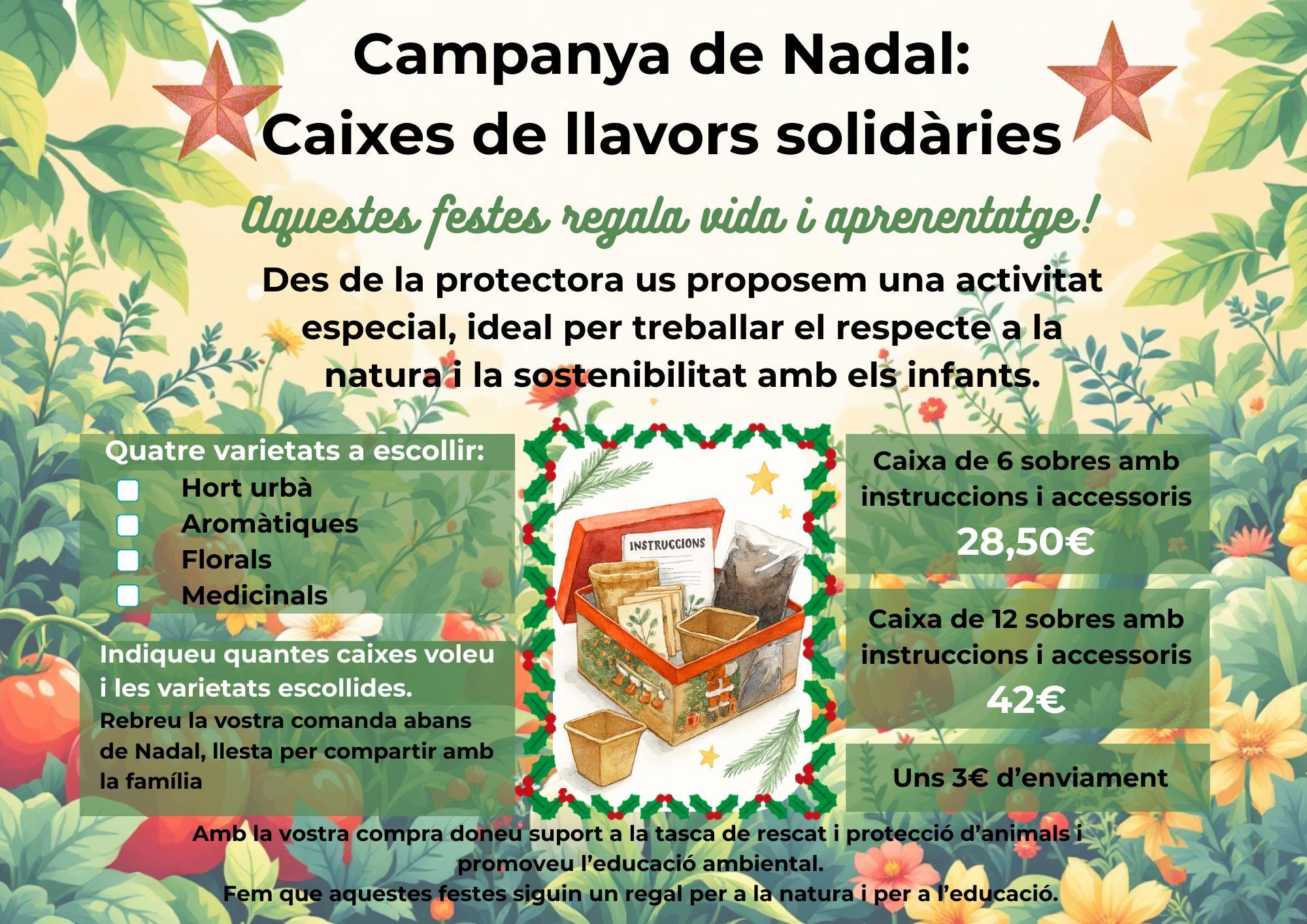 Aquestes festes, regala vida i consciència Des de la protectora us proposem una activitat especial per compartir amb infants i famílies: les caixes de llavors solidàries. Una manera bonica de sembrar valors, respecte per la natura i educació ambiental.