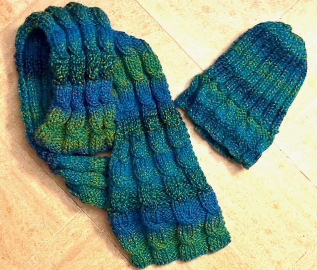Le modèle Jaune/orange ayant été vendu, (un grand merci à notre fidèle Evelyne B) voici un autre modèle dans les tons bleu, turquoise, vert.