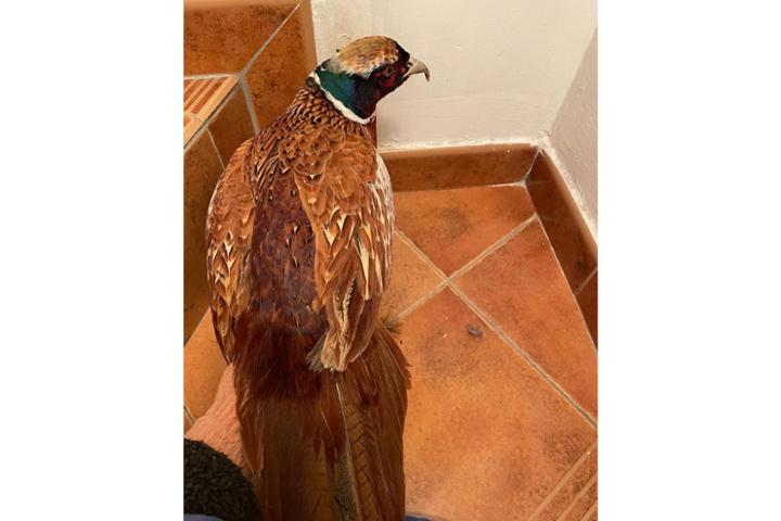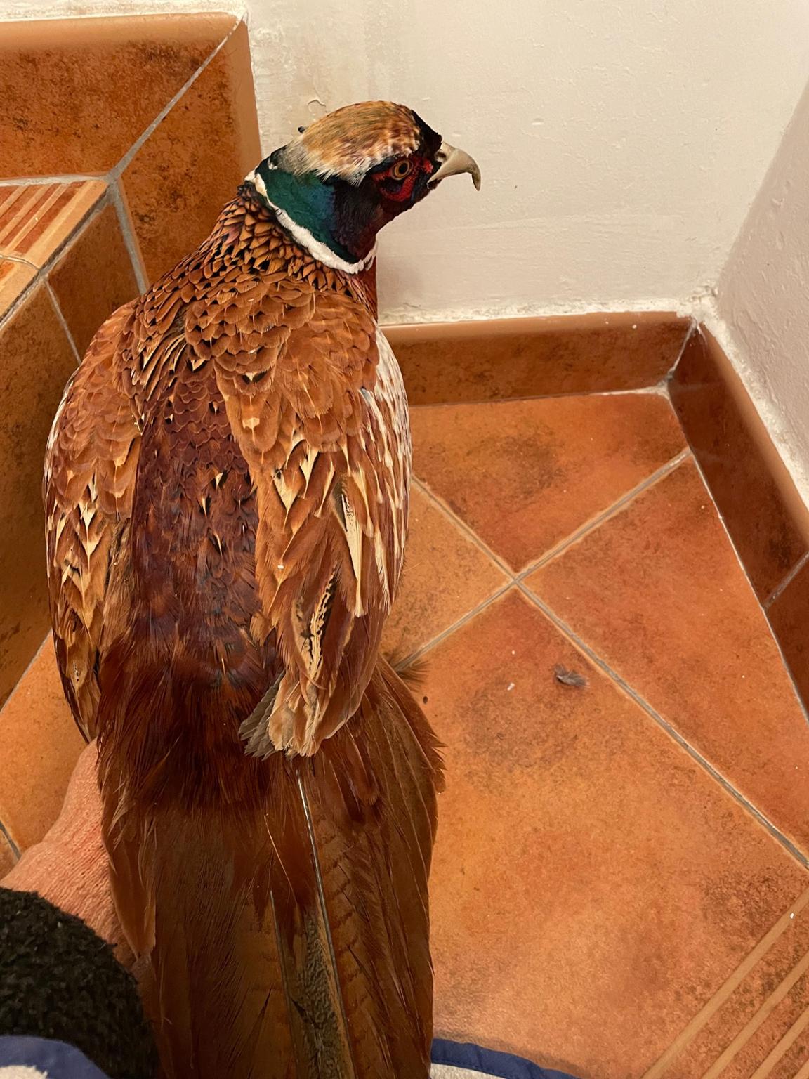 Rescate de faisán encerrado y maltratado, con el pico deformado.