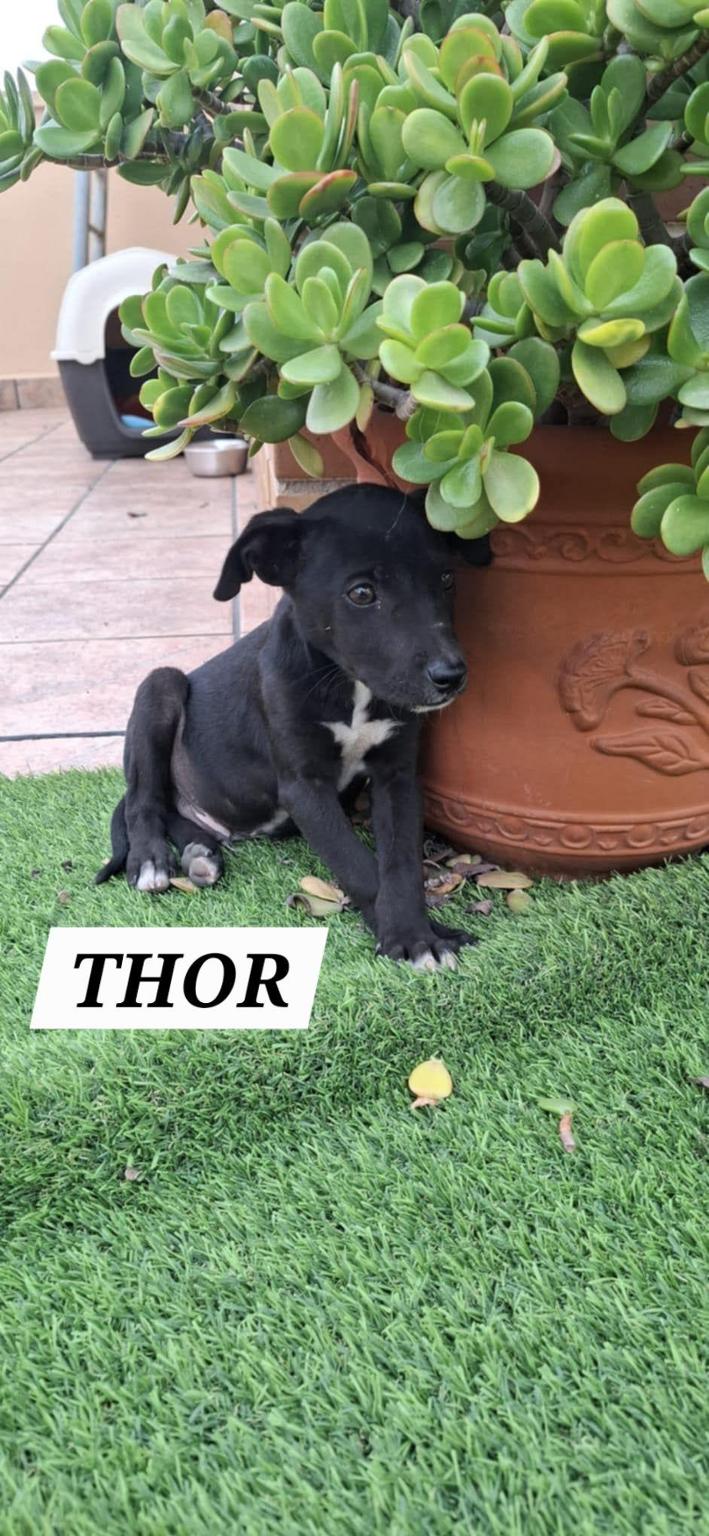 Thor adoptado en diciembre del 2025. Al principio con miedo y luego muy jugueton. Ellos nunca saben lo que les pasa, tan a gusto que estaban con su madre y hermanos. Verse solo es algo muy traumatico. Afortunadamente, para el su historia acabo con final feliz.