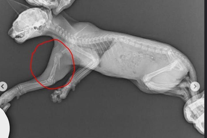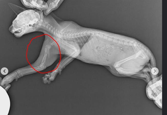 Ahora se encuentra en nuestro refugio, tomando antiinflamatorios y con todos nuestros cuidados ❤️. Mañana volverá al veterinario para que el traumatólogo valore si puede ser operado.