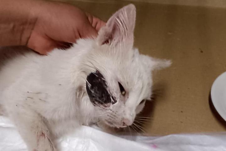 Lamentablemente, su estado era muy grave estaba severamente desnutrido y presenta una herida en la cara con signos de gangrena e infestación de gusanos.