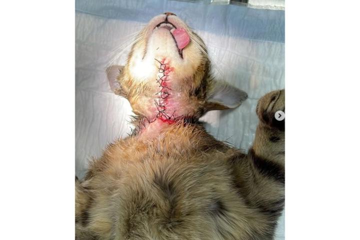 Recibimos un aviso sobre su estado, y cuando finalmente pudimos capturarlo, nos encontramos con una gran herida en su cuello que aún no ha logrado cerrar del todo.