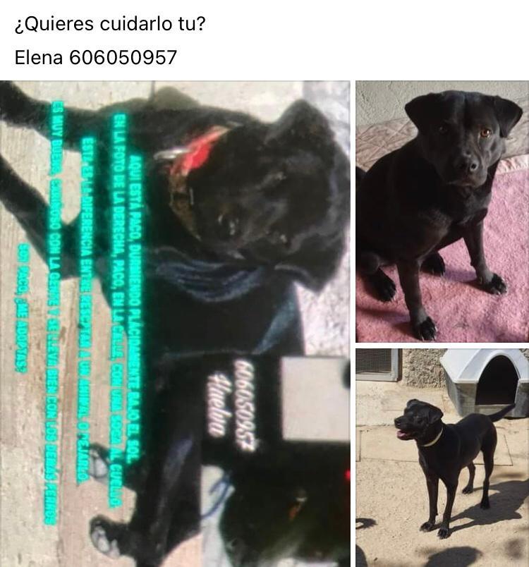 Pero la principal sorpresa fue Paco. Tiene negatividad a la leishmania y está guapísimo. Tiene un pelo negro precioso y, aunque mantiene las distancias con las mujeres, se pone muy contento con las cosas que le dices. Poco a poco se acerca, y te lame. Con los hombres, sin problemas.
