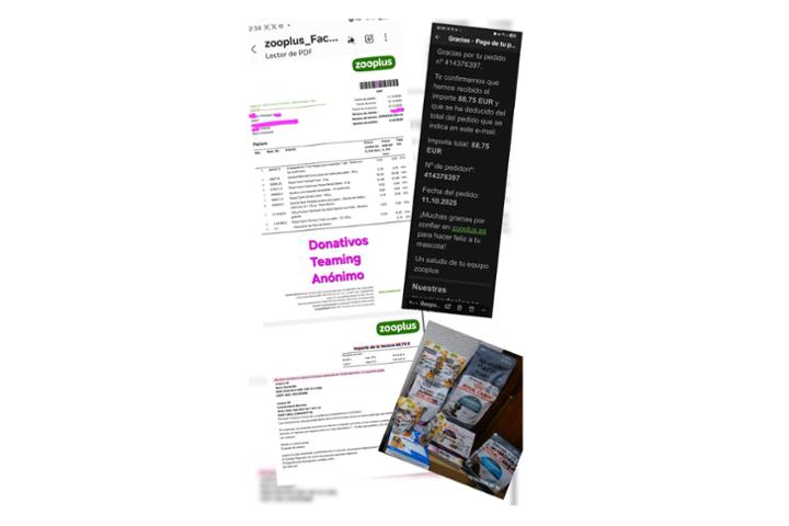 Aquí está la prueba de la comida que hemos comprado gracias a su colaboración.
