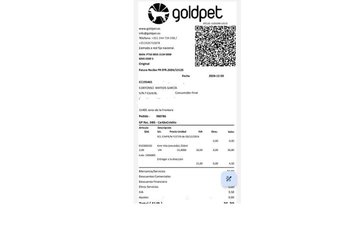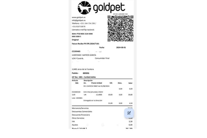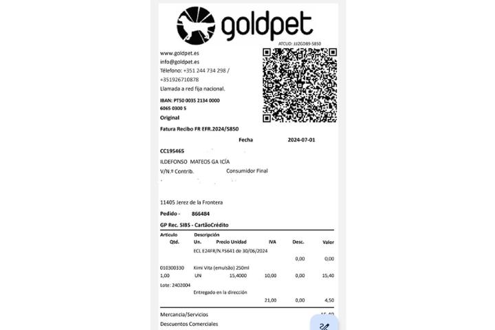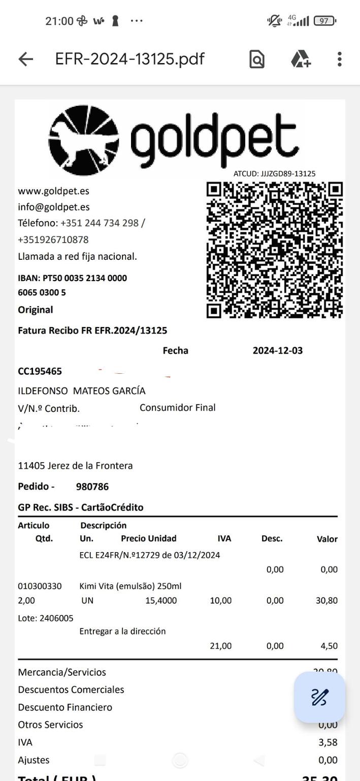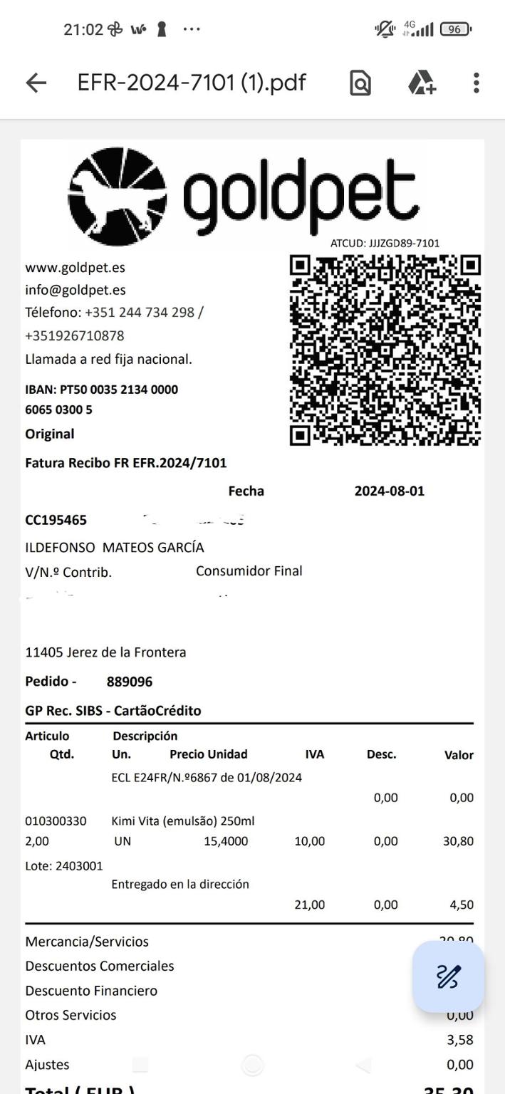 He subido para la información del grupo la factura correspondiente a la cuarta compra de vitaminas realizada en el mes de Marzo pasado.