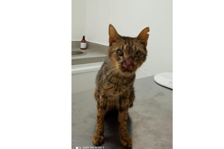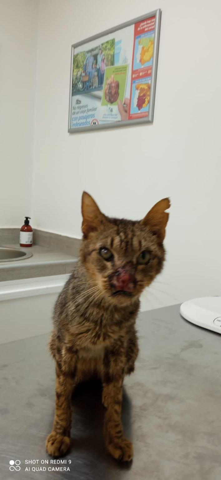 Le hemos ingresado en una clínica veterinaria hace una semana para el tratamiento de su nariz y boca.
