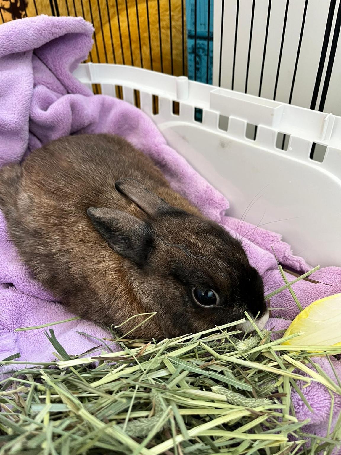 Nous réalisons notre premier sauvetage de lapin très malade. Il a une chance de s'en sortir s'il voit un vétérinaire dès la semaine prochaine. Une communication Facebook et Instagram est en cours de préparation. Nous sommes en plein sauvetage actuellement.