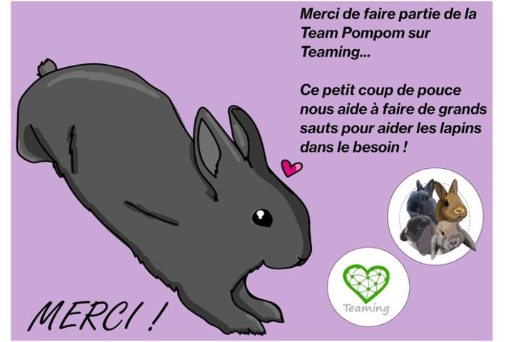 Sachez que l'euro mensuel donné par chaque teamers est très précieux pour la prise en charge de ce couple de lapins ! Il est également possible de parrainer monsieur et mademoiselle sur le Hello Asso du Pompom !