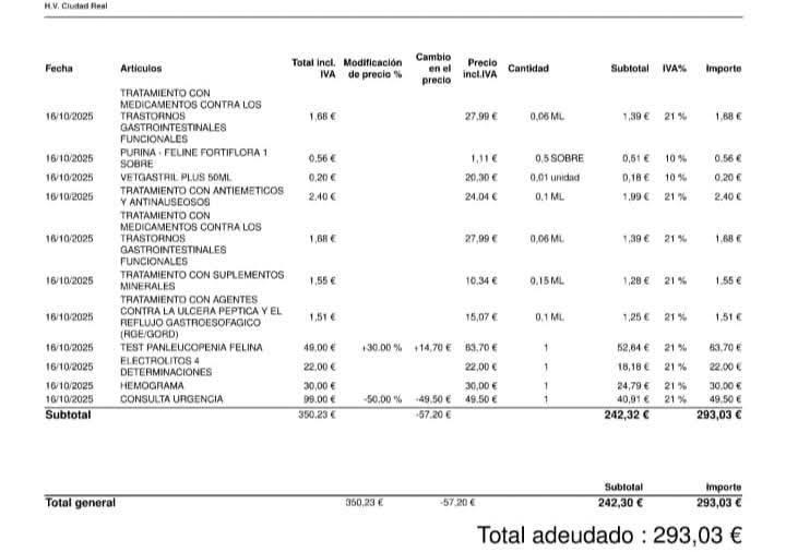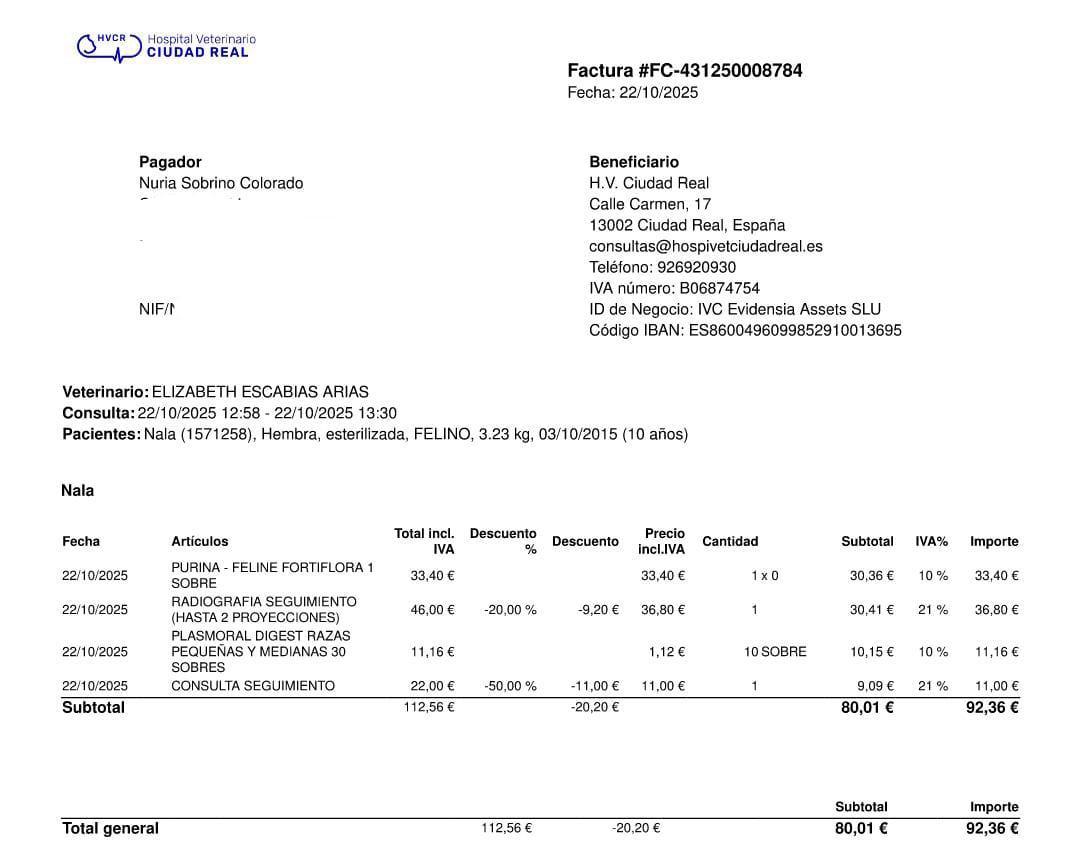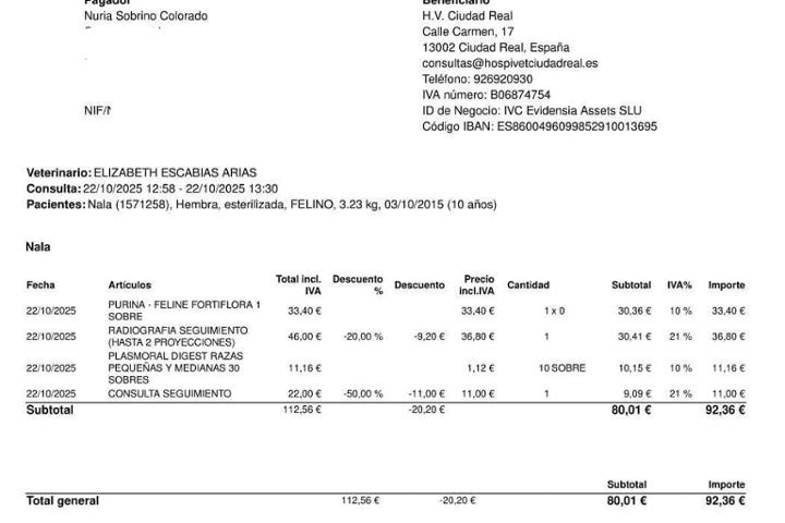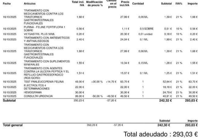 Factura veterinaria de Claus