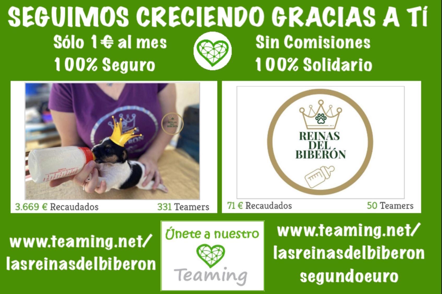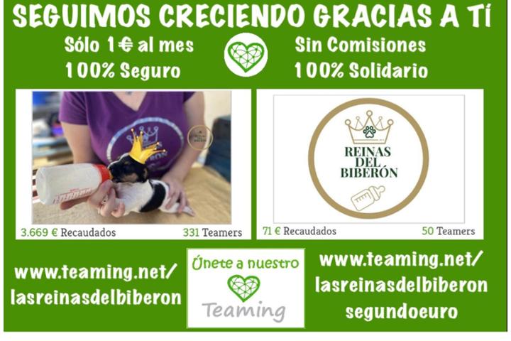 Únete a nuestro grupo Teaming: Dona 1€/mes automáticamente para ayudarnos a seguir salvando vidas. Puedes unirte aquí: www.teaming.net/lasreinasdelbiberon el grupo www.teaming.net/lasreinasdelbiberonsegundoeuro
