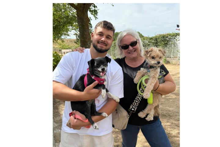 El perrito que llegó tras ser abandonado en las calles de Jaén ahora se va con Lucía y Danel a Donosti, donde será muy feliz.