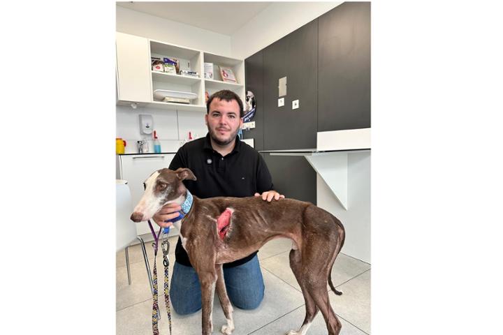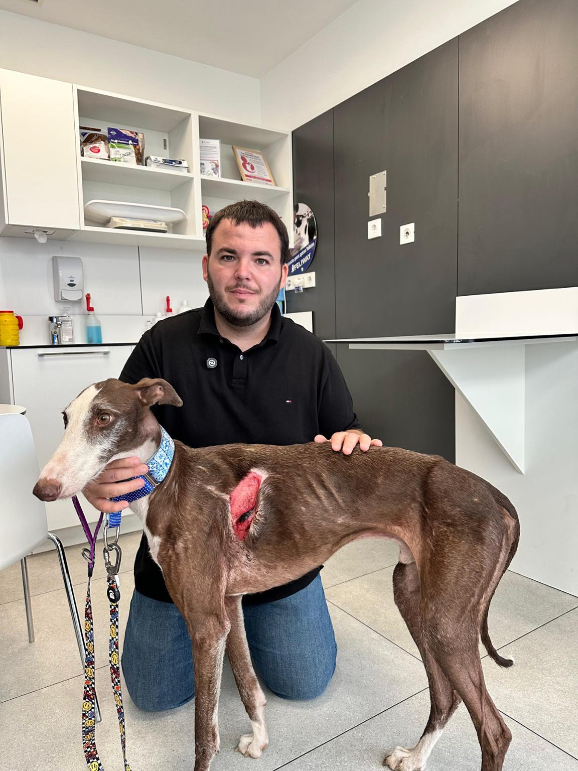 Este rescate ha sido posible gracias al trabajo de María José Hm y Elena, quienes han cambiado la vida de este galgo al que hemos llamado Chocolate. Ahora, está en camino al Hospital Veterinario en Madrid, donde necesitará cirugía urgente para salvar su vida.