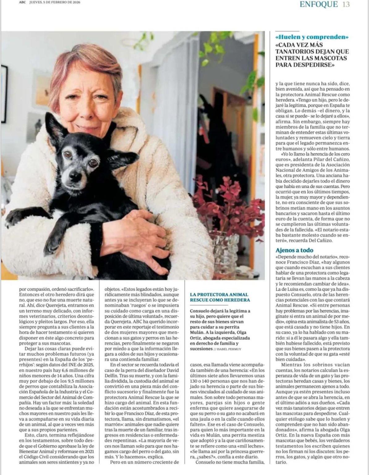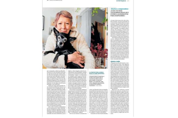 Hoy aparecemos en el periódico ABC hablando de los testamentos solidarios a favor de Fundación Animal Rescue y de nuestro Proyecto Hogar.