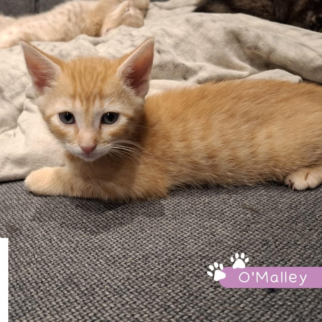 • O’Malley a trouvé son foyer le 8 octobre 2025 — merci à sa famille adoptive de lui offrir une vie pleine de ronrons après un abandon à l’âge de 10 jours seulement !
