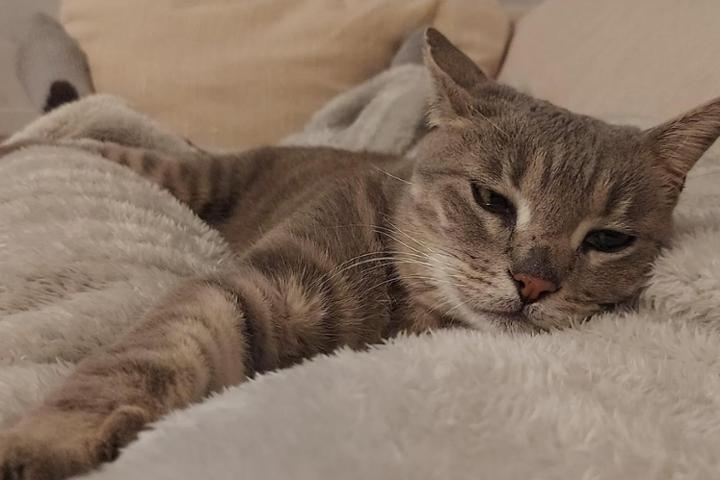Recibimos un aviso de un gato con collar en situación de calle en plenas heladas. Gracias a una casa de acogida pudimos hacernos cargo. Resultó tener chip y finalmente conseguimos su cesión para que no pasara más tiempo en la calle arriesgando la vida.
