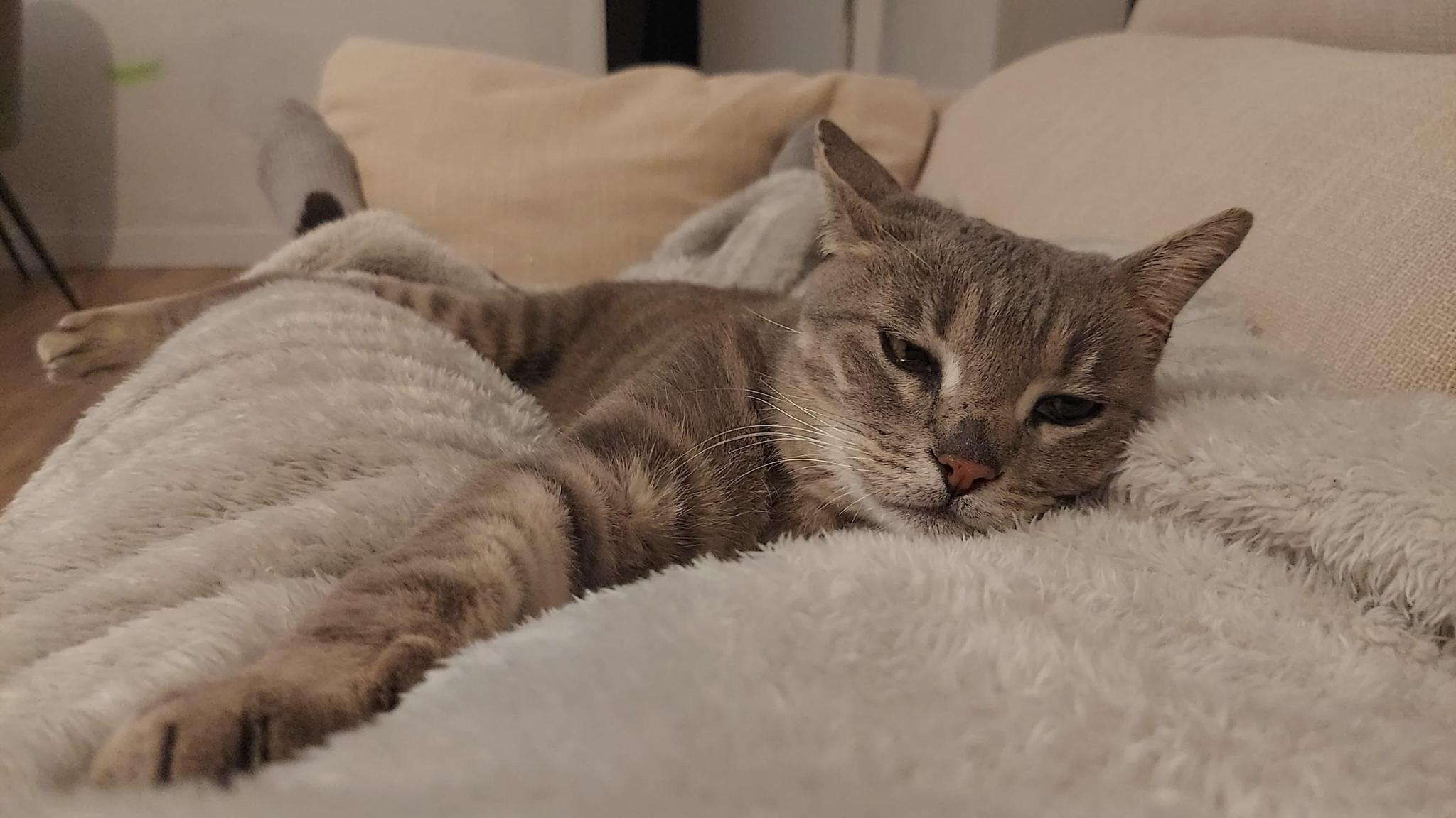 Casper es muy muy cariñoso y le encanta dormir en la almohada. Es compatible con otros gatos, perros y niños.