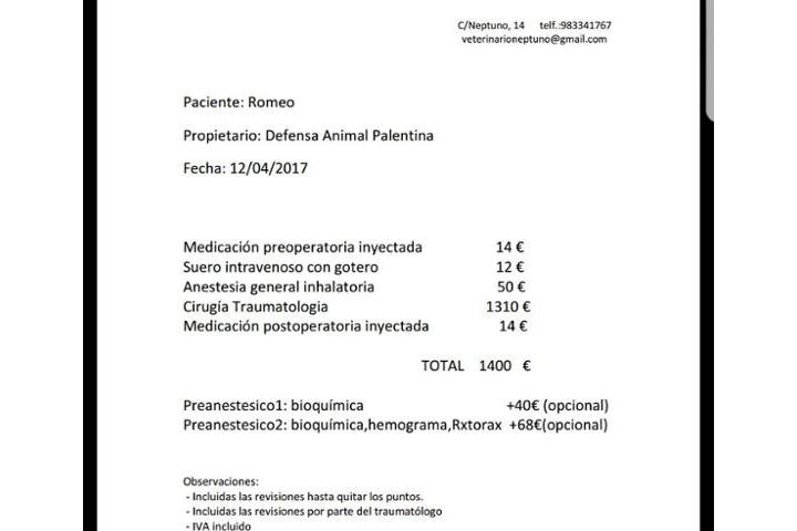 Tenemos muy malas noticias y muy poco tiempo para solucionarlas. Romeo estuvo el lunes en el traumatólogo pues entre subastas y donativos además de aportaciones personales, habíamos conseguido reunir los 900€ del presupuesto original. Sin embargo su lesión es peor de lo que pensaban y además de la muñeca, tienen que intervenir el codo, por lo que el presupuesto aumenta en 500€!!! Pero no podemos esperar más o irá a peor y es posible que si tardamos no consigamos los mismos resultados y Romeo tiene poco más de un año para comprometer su calidad de vida. Como sabéis llevamos muy mala racha (podéis ver las últimas facturas en el álbum llamado facturas de esta página). Los últimos rescates han hecho peligrar seriamente nuestra economía hasta el punto de no poder seguir rescatando. Evidentemente cuando rescatamos lo hacemos a animales que lo necesitan de verdad. Hachiko y sus hermanos requirieron ingresos, pruebas, necropsias...De hecho Hachiko (único superviviente) aún sigue en tratamiento y le hemos tenido que realizar pruebas costosas, darle medicación y pienso específico. Pascual estuvo 3 semanas ingresado en León para tratar con un especialista su enfermedad y nada más recibir el alta tuvo que ser ingresado de urgencias en Valladolid, para volver corriendo a León a realizar una resonancia pues se puso muy grave debido a una meningitis. Todavía no sabemos si sobrevivirá y está ingresado. Lorenzo también ha tenido que estar ingresado varios días por un proceso intestinal y aún hay que controlarlo pues tiene el pene irritado y hay que saber la razón. Hemos tenido que intervenir a Julia de su pata pues salió coja de la perrera debido a una lesión antigua y a Eva de un ojo primero y después del otro por un antiguo virus que tuvo cuando fue rescatada. A ello se unen todas las esterilizaciones, vacunas, chips y pasaportes....para una asociación sin ningún tipo de ayuda, subvencion o ingreso. Y de verdad, NO PODEMOS MÁS. Sabemos que como nosotros hay muchas asociaciones y que es mala época para pedir ayuda entre problemas económicos, vacaciones...pero tenemos que recaudar el dinero antes del jueves 20 que es cuando se realizará la operación. AYUDADNOS POR FAVOR!!!