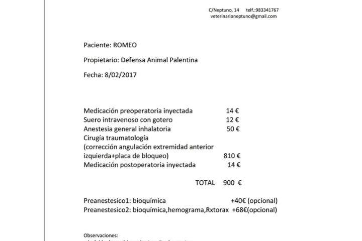 Gracias a vuestra ayuda y a las subastas pudimos operar a Carla de su doble luxación y a Malu de su injerto y enucleacion y casi tenemos para la intervención de Julia de tendones, pero no podemos hacer frente a la del pobre Romeo. POR FAVOR!!! Ayudadnos con ROMEO. Publicamos presupuesto, radiografía y foto de Romeo donde se aprecia la lesión. Acogida, donaciones, acogida...toda ayuda es poca!!