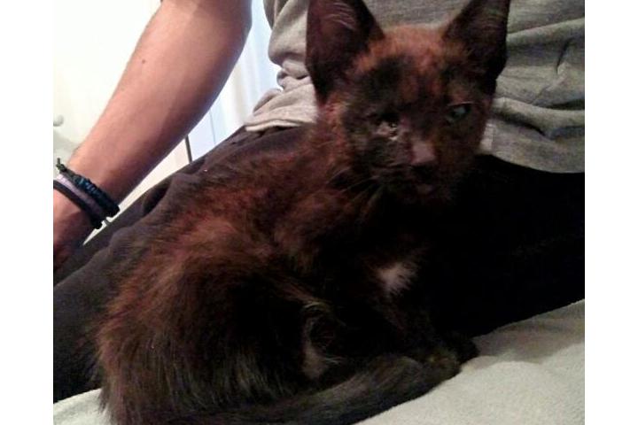 Eva fue encontrada en muy mal estado en el patio de un colegio. Se metió allí, quizás en busca de cariño, de alimento y calor. A causa probablemente de un herpesvirus ha perdido un ojito y tiene una úlcera en otro. Estaba llena de parásitos también. Ahora está recibiendo asistencia veterinaria, pero NECESITA ACOGIDA TEMPORAL URGENTE porque no tenemos donde albergarla y en la calle morirá.