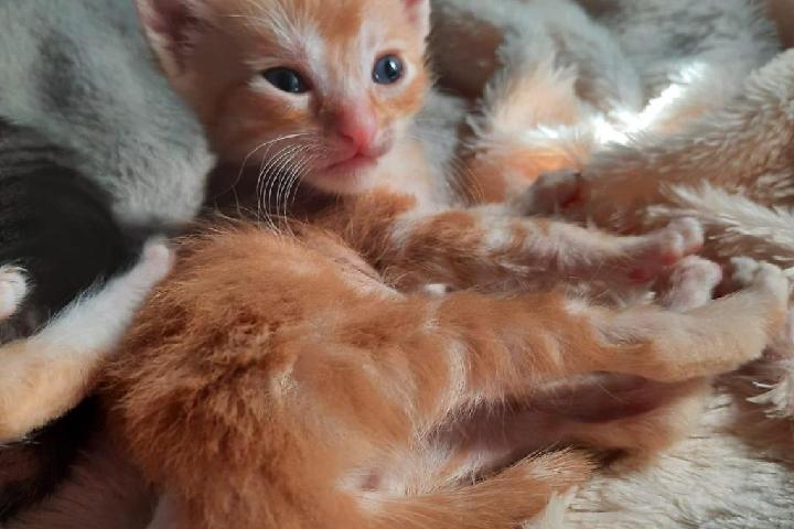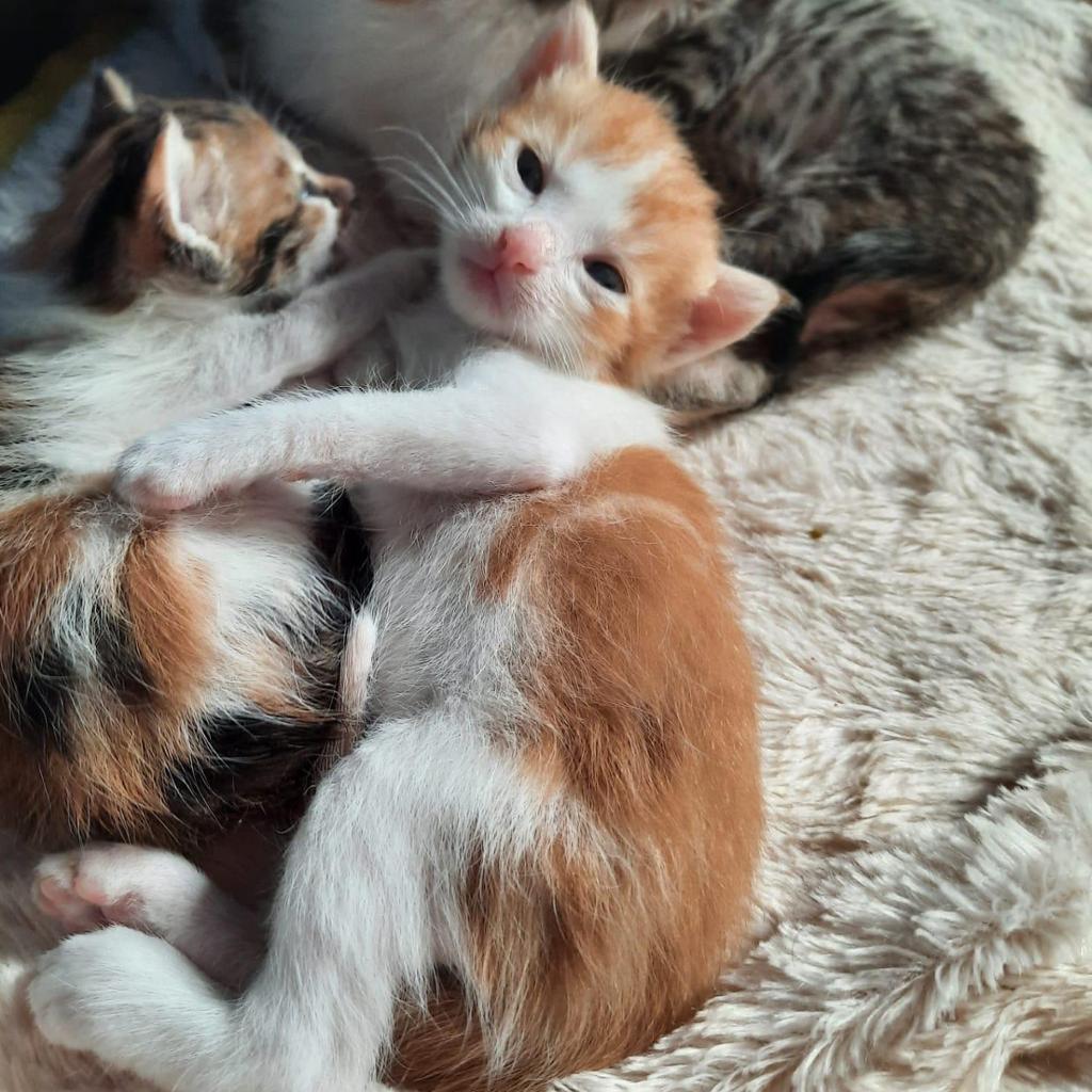 Estos 6 bebés (uno nos dejó :() son los chitines, sí, los hijos de Chitina, una gatita que recogimos en un estado muy avanzado de gestación.