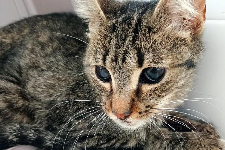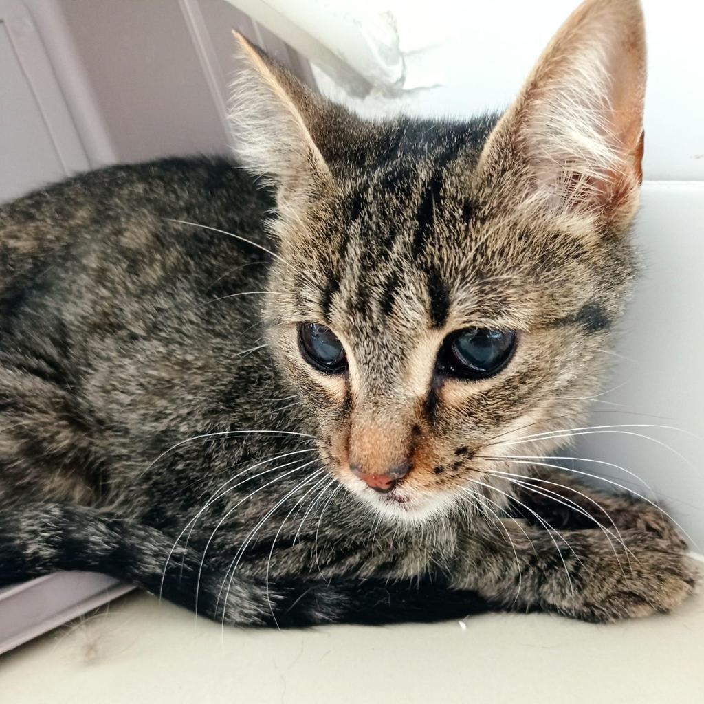 Castaña fue recogida de un solar donde había otros gatitos que no consiguieron sobrevivir. Ella llegó muy acatarrada y muy débil, pero se ha ido recuperando poco a poco y en breve estará preparada para encontrar un nuevo hogar.