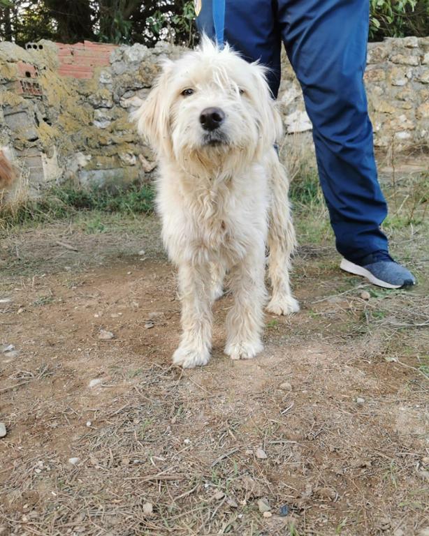 Circe fue encontrada por una compañera en un pueblo de Palencia en un día de mucha lluvia. Estaba empapada, llena de pulgas y ácaros. Empezó a seguirla y por supuesto no iba a dejarla allí. Circe había encontrado a su salvadora. Y aquí está ahora buscando un hogar.