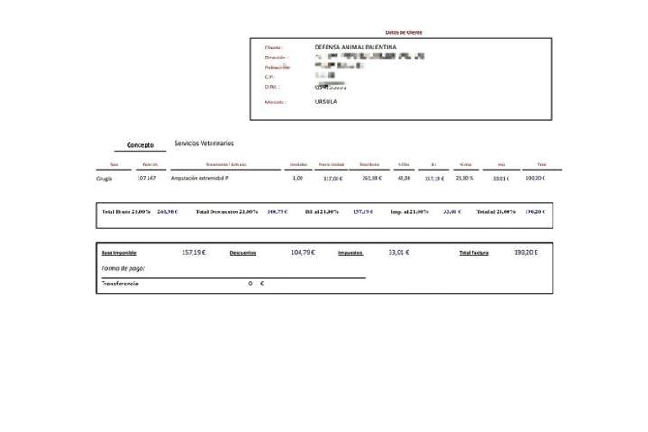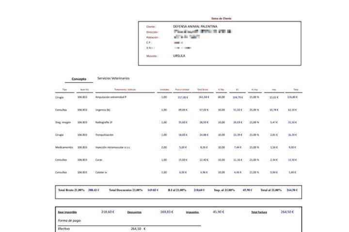 Úrsula llegó a nosotros pues estaba herida en la calle después de que un niño le tirara una piedra, lo que le causa diversas heridas y fracturas. Finalmente ha habido que amputar una de las patas, pero hace vida normal. Después de este hecho, no ha mostrado el más mínimo recelo o desconfianza. Es muy cariñosa.