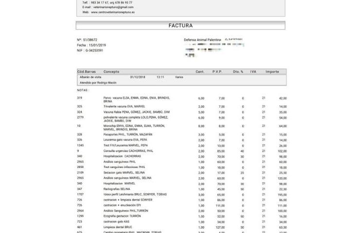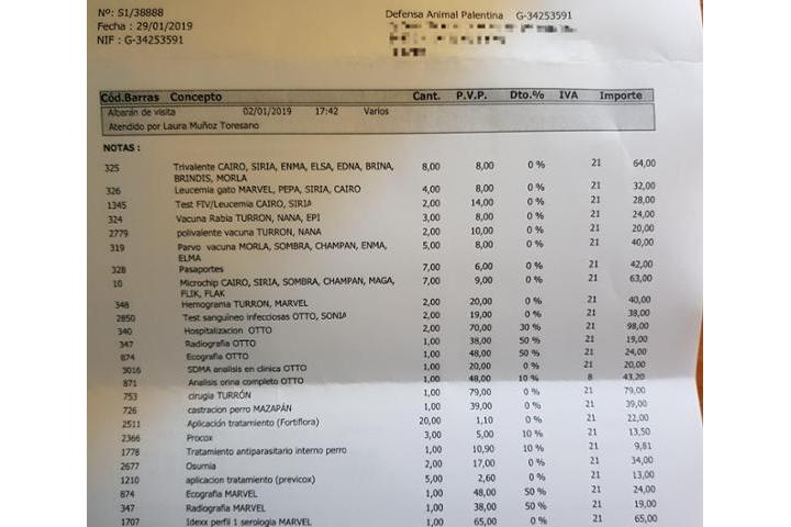 Este facturon es el que adeudamos ahora mismo en el veterinario. Sin contar con lo que tengamos que pagar este mes de los ingresos y pruebas de Otto (2 personas han hecho donativo para él), operación de Brujo y pruebas de Marvel entre otros, operación de Nara...