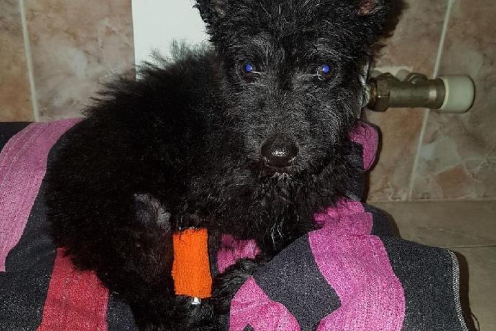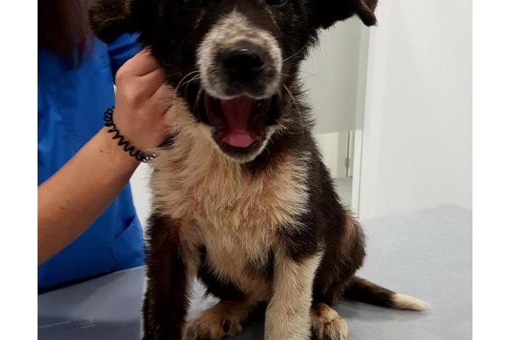 Oblack fue encontrado en un pueblo por un chico pensando que era un gato pues se escondía en el tubo del agua de su casa. Rápidamente lo recogió y lo llevó al veterinario y de ahí fue trasladado a la perrera donde lo rescatamos. El primer día lo pasó ingresado por deshidratación, pero ya está más recuperado y dispuesto a cambiar su suerte y encontrar un hogar definitivo.