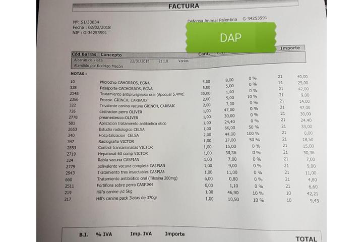 Además tenemos que llevar a Víctor el día 13 a León a hacer un TAC porque tiene una masa que presiona su tráquea y se sospecha que sea metástasis del cáncer tipo mastocitoma del que fue intervenido cuando lo rescatamos de la perrera. No tenemos presupuesto en hoja, pero siempre nos cuesta 300€.