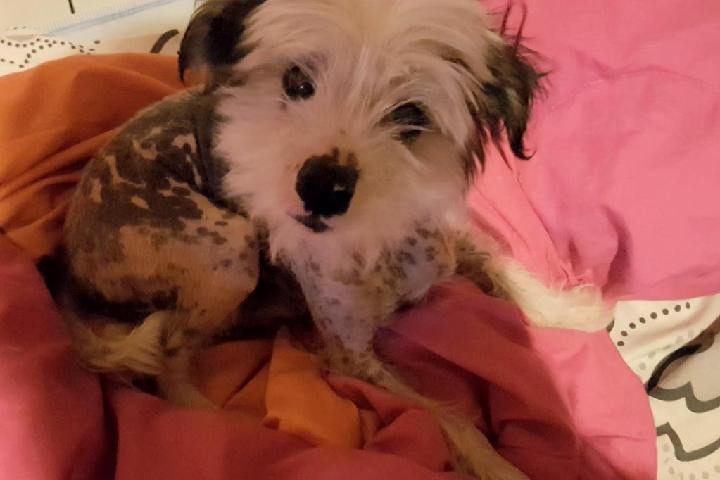 Krusty fue rescatado hace poco de la perrera pues nos enternecio verlo allí sin pelo con el frío de Valladolid. Directamente fuimos al veterinario donde le hicimos pruebas para su falta de pelo (no es un crestado chino, aunque es muy probable que alguien lo haya afeitado para hacerlo colar como tal). Ya tiene más pelo, aunque hay zonas que le faltan. Se están haciendo pruebas, pero es casi seguro que sea algo hormonal. No es nada contagioso y se solucionará con medicación. Por lo demás es un cachorro cariñoso y juguetón, un poco dependiente pues lo ya pasado mal con el abandono. Compatible con otros perros y gatos y niños. Se entregará aproximadamente en un mes (mediados de marzo de 2018 más o menos) cuando sepamos algo más sobre su problema.