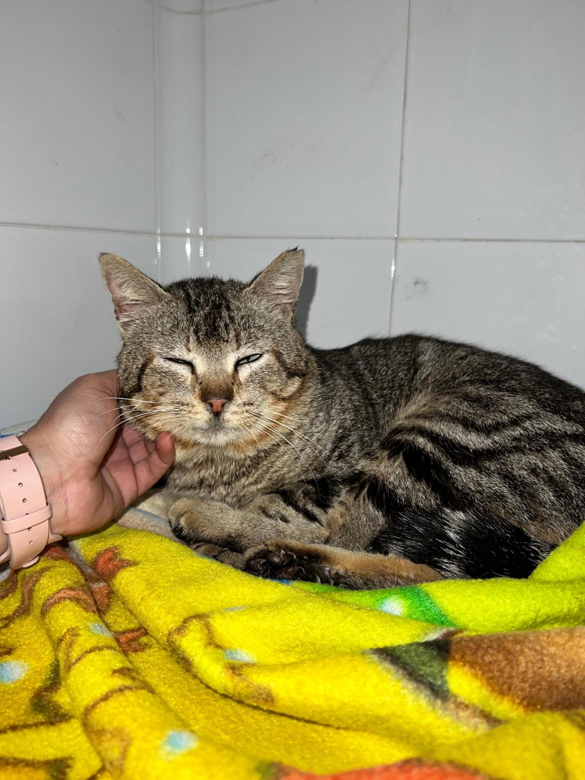 Como intuireis, ciego de un ojo es INVIABLE vivir en la calle por lo que hay que sacarlo ya de ella y tratarlo, peeeero quitarselo tambien a su mamá es un aberración que no puedo permitir, por lo que intentaremos capturarla con el bebé( aunque el se deja coger perfectamente), castrarla a ella y probar si es viable que viva con personas, sino será retornada pero despues de que pase un tiempo más con su niñito bebé.