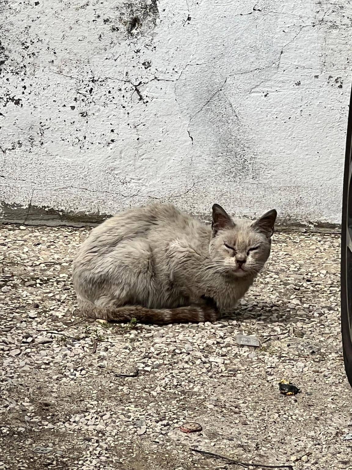 Es un gatito siamés con unos ojos azul claro increibles! Lo vi por primera vez el día que se capturó a Orus, lo veo regular, los ojos llenitos de legañas y demasiado canijito, aunque en la foto al estar sentado parece que abulta más pero no, es un gatito bastante desnutrido.