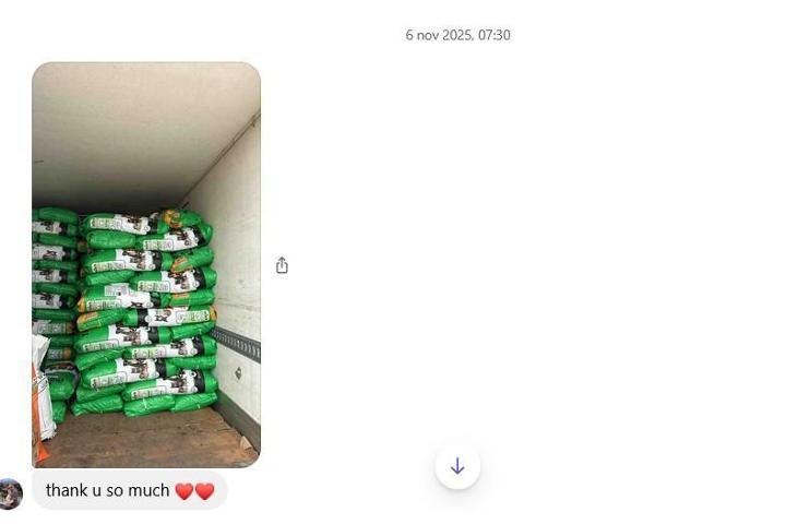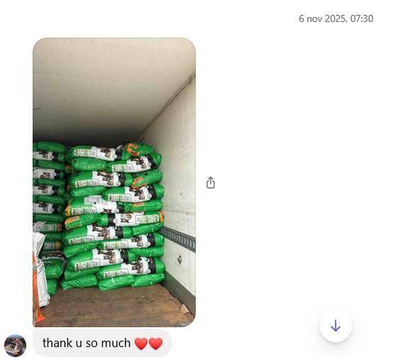 Nous lui envoyons régulièrement des palettes de croquettes et autres dons pour compléter. La dernière livraison de 3 palettes (dont une complète de croquettes) est arrivée chez elle il y a à peu près une semaine. Dans ce cas, nous prenons sur les dons pour payer l'envoi des palettes ou nous créons une collecte