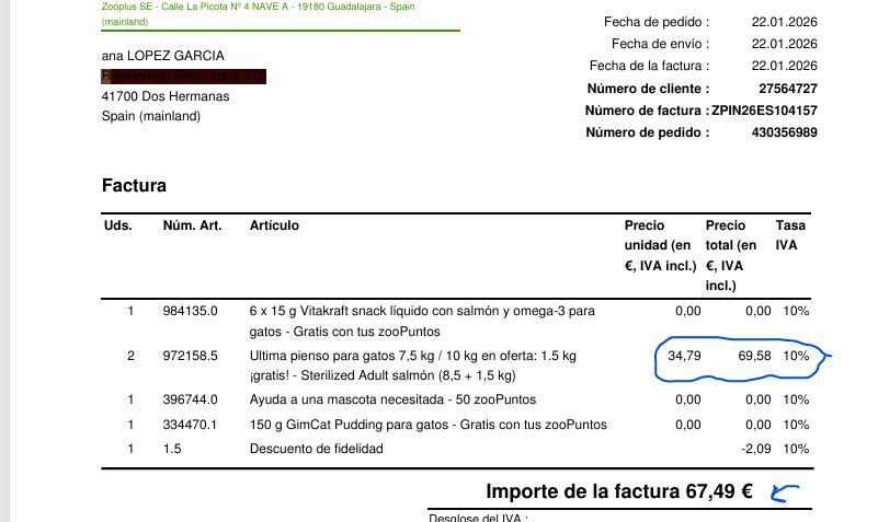 hola a todos, e sacado el teamimg de 2 meses ,os dejo las compras y sus facturas. compre sobres en oferta para 2 gatis que hay con la boca mal y no pueden masticar bien, y una chcia me dono 2 sacos de pienso mercadona, por lo que e comprado el de ultima 2 unidades en oferta de 10 kilos , que mezclandolos cunden mucho mas, ya que este pienso se hartan mas. el temporal esta siendo bastante jodido , pero hasta ahora llevandolo bien gracias a dios..
