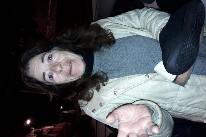 Adela estos días atrás, con las fuertes lluvias..y sin coche; lo tiene estropeado.