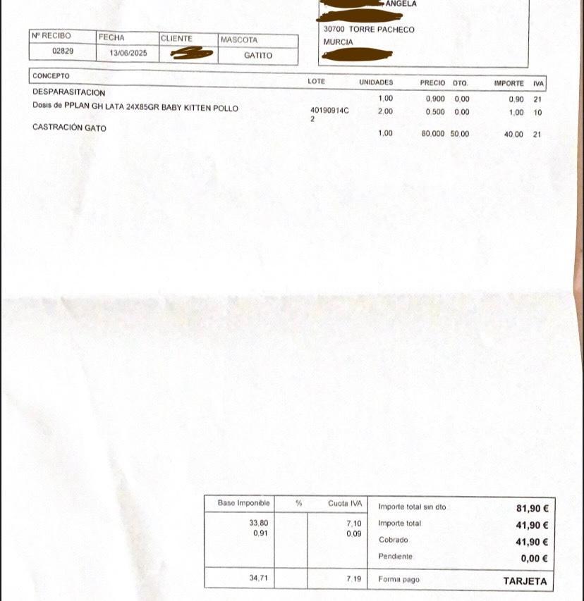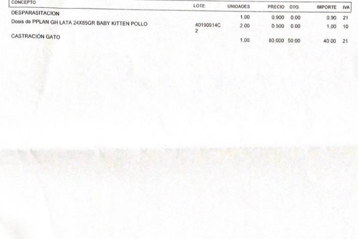 Os dejo algunas de las facturas del veterinario, aparte de comida para ellos y los de la colonia, arena… Han sido más de 120€ SOLO ESTE MES. ¡Gracias por colaborar!