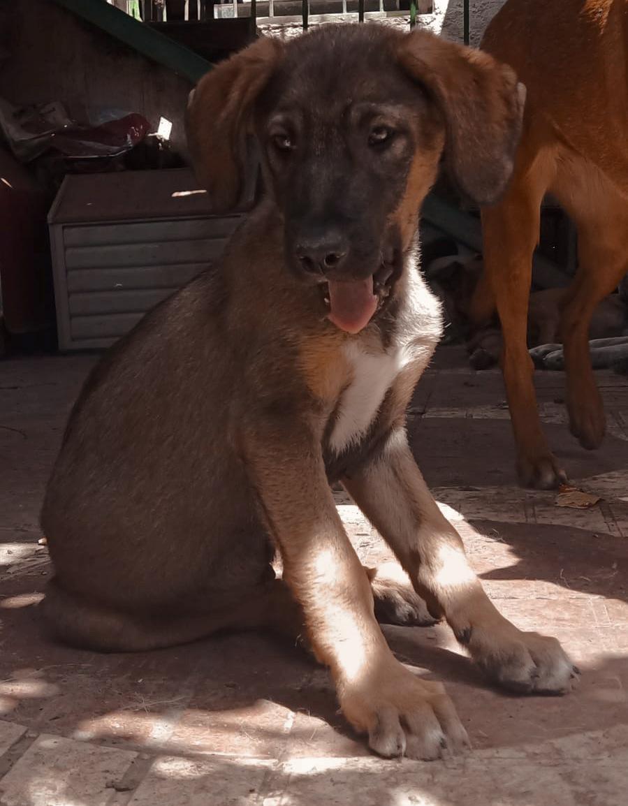 Tiene tres meses de vida, es súper bueno, sociable, tranquilo y obediente. Tiene mezcla de pastor belga, por su madre, aunque no llegara a ser tan grande como uno de ellos. Su padre, lo desconocemos.
