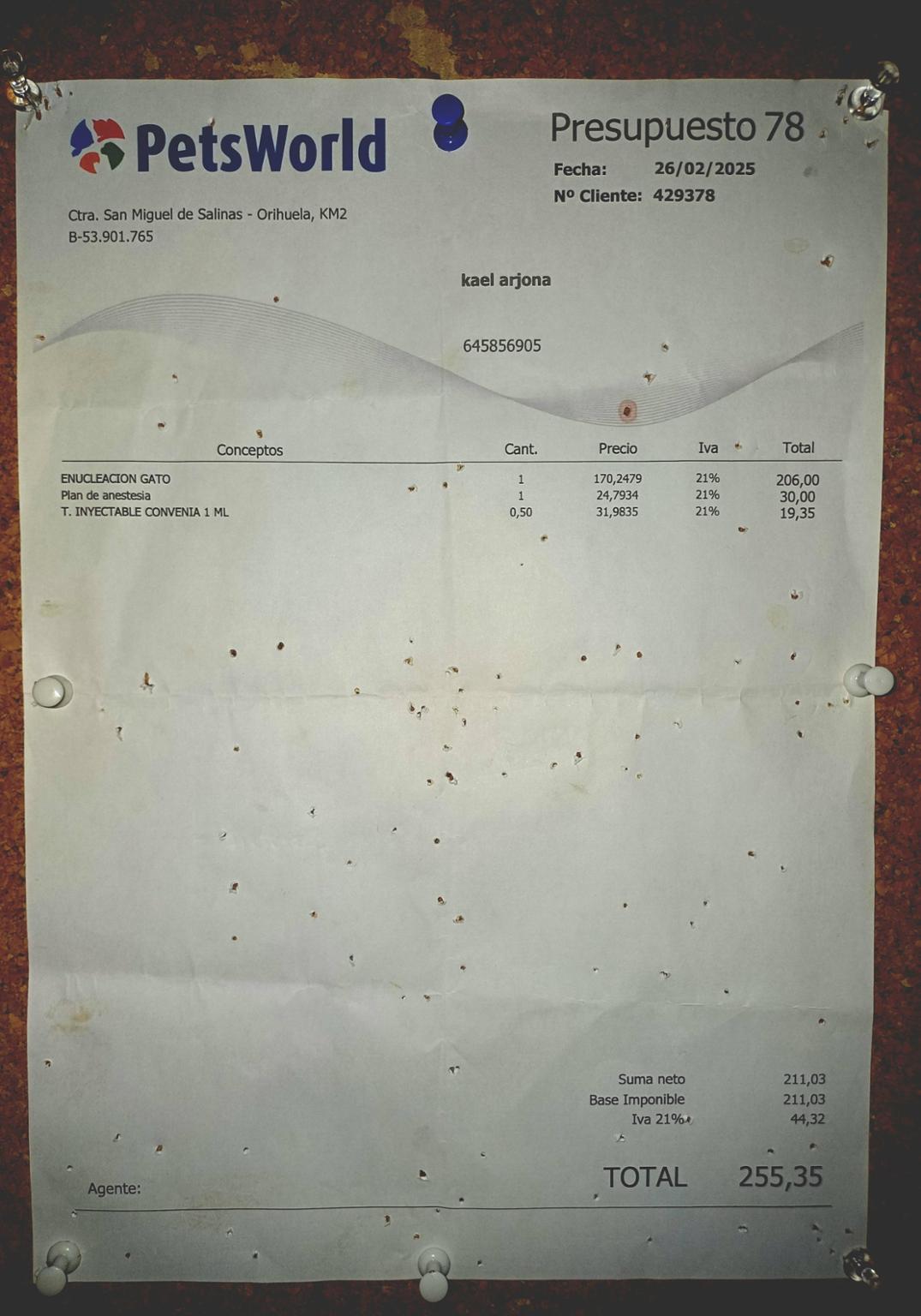Esta vez le ha tocado a ella. Aquí os dejo la factura del veterinario y además el spray que vamos a usar con ella y todos los demás.