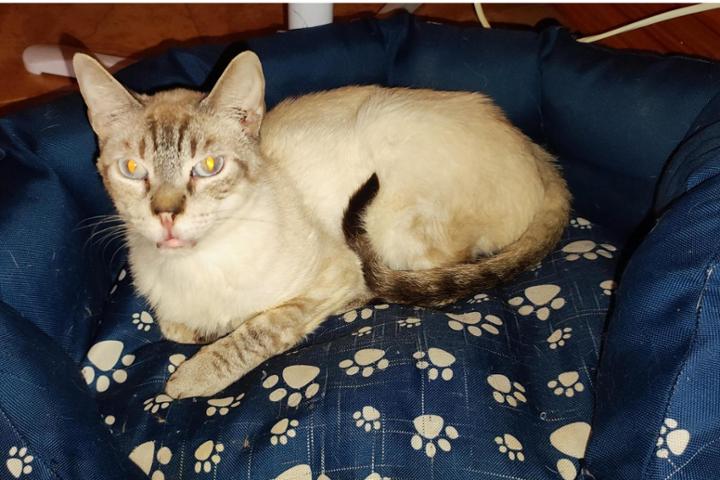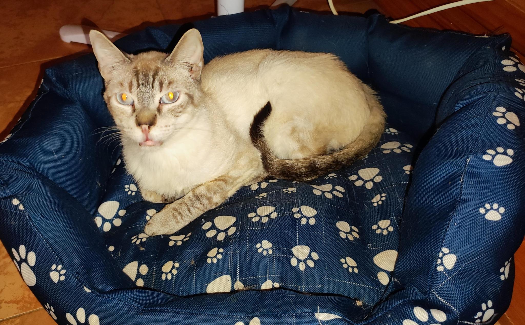Esta es BASTET la mimosa, una gatita rescatada de una chatarreria. De pequeña, sufrió muchísimos ataques de sus dueños y por eso mismo tiene así el ojo, hinchado, ciego y frágil ya que se le podria estallar en cualquier momento.