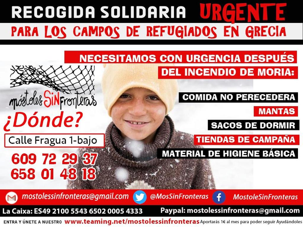 Durante todo el mes de octubre estaremos recogiendo vuestras generosas donaciones a las puertas de los supermercados de Móstoles. Con la ayuda de todxs enviaremos otro cargamento de ayuda humanitaria para apoyar la causa de SOS Refugiados en Atenas, quienes actualmente están alimentando a miles de personas abandonadas a su suerte por el sistema.