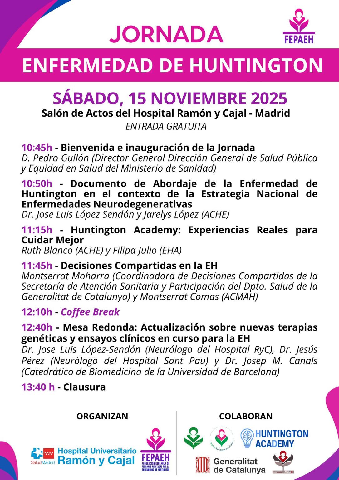 ¡Te invitamos a la Jornada Huntington de FEPAEH 15 de noviembre en Madrid!