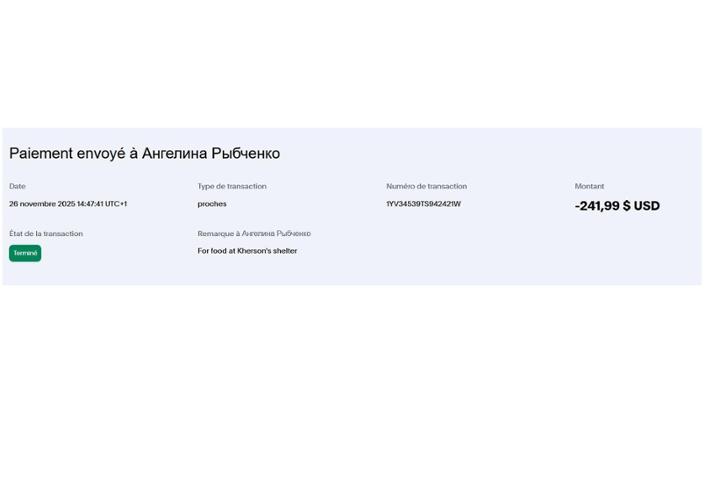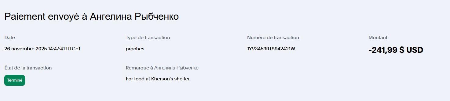 Si vous souhaitez faire un don unique et plus conséquent, voici le paypal de l'oranisation ukrainienne : PayPal oleshkishelter@gmail.com