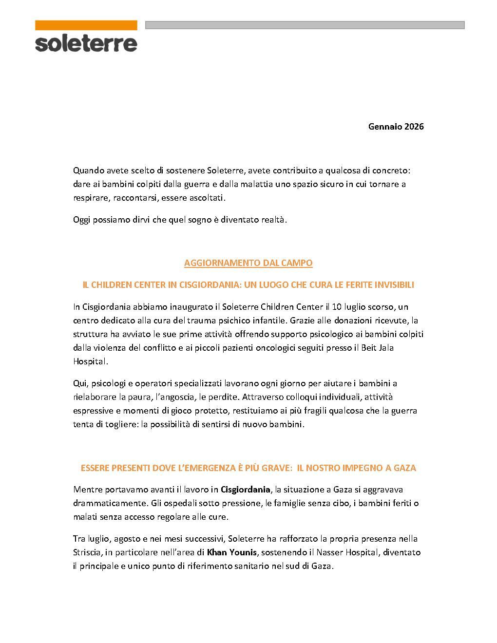 Tra luglio, agosto e nei mesi successivi, Soleterre ha rafforzato la propria presenza nella