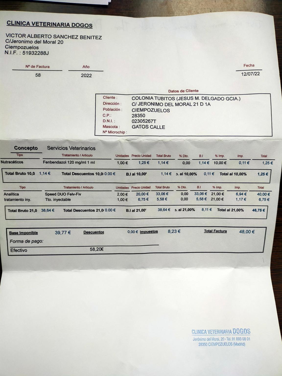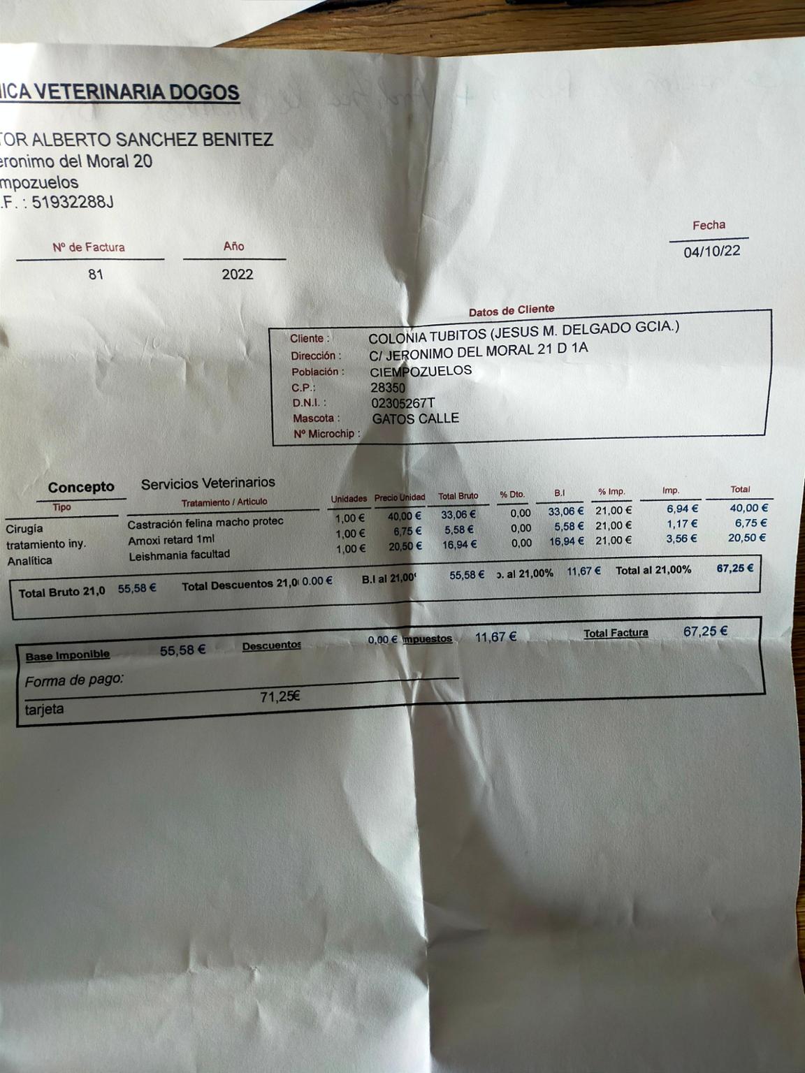 Kiki, también conocido como Van gogh, es un gato que abandonaron en la colonia Tubitos. Se le rescató y tuvimos que llevarle urgentemente al veterinario debido a la infección que tenía. Tuvo que estar hospitalizado por la infección de orina e intestinal. Actualmente está mejor pero se le detectó un riñón atrofiado por lo que necesitará medicación de por vida. AQUÍ OS DEJAMOS LA FACTURA