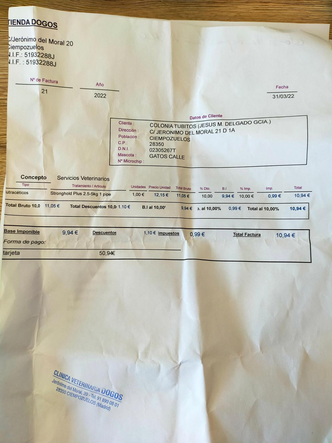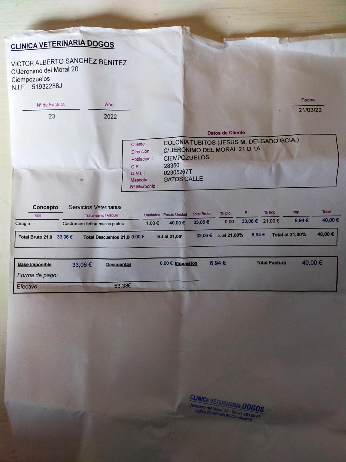 Hola Fauna!! Vamos actualizando nuestra actividad. Aquí os enseñamos a "BOLO" Un gato negro callejero que vive en la rampa de un garaje junto a su hermano "LOBO". A ambos los hemos desparasitado, esterilizado y dado de premio una lata cargada de nutrientes. A continuación os dejamos los gastos veterinarios de BOLO.