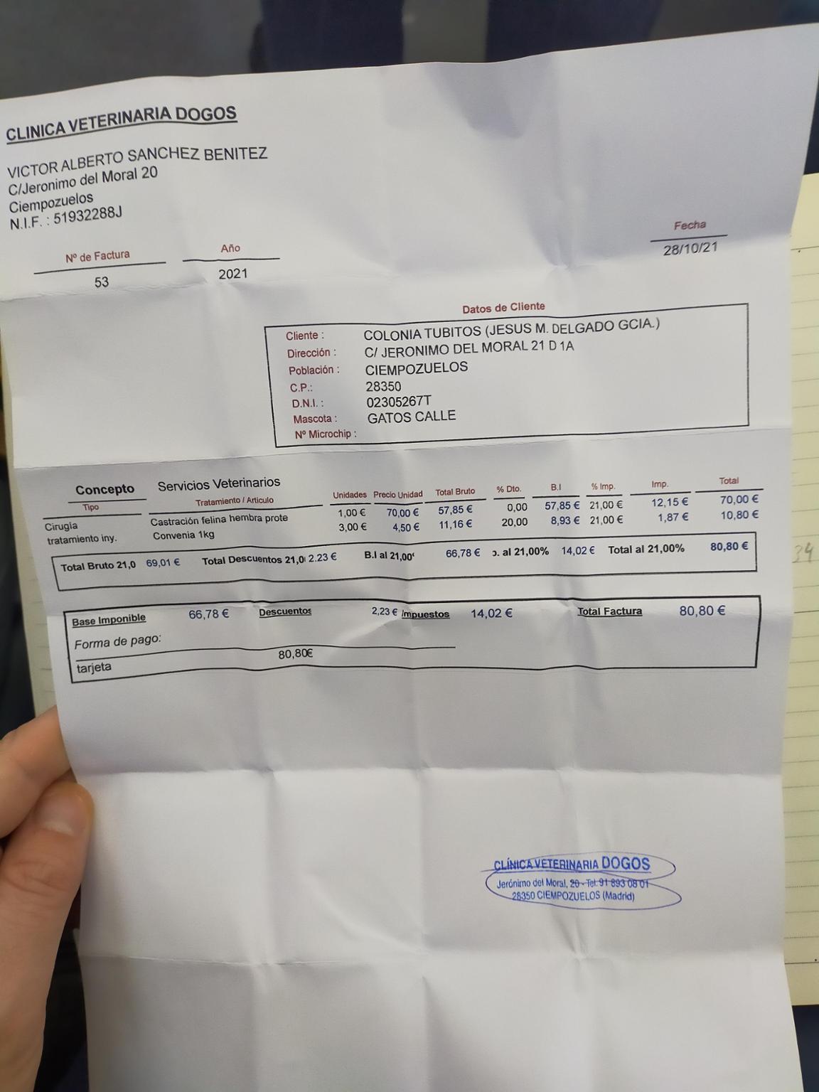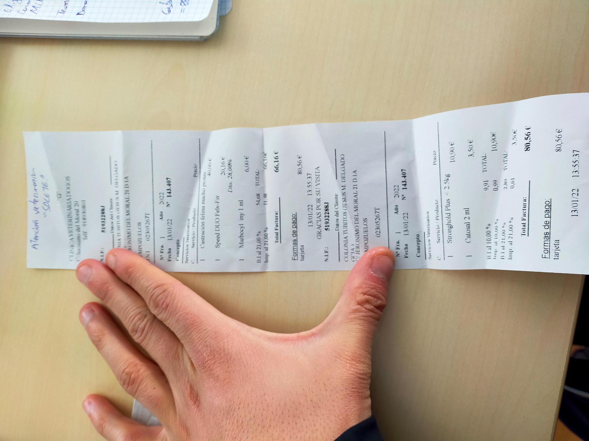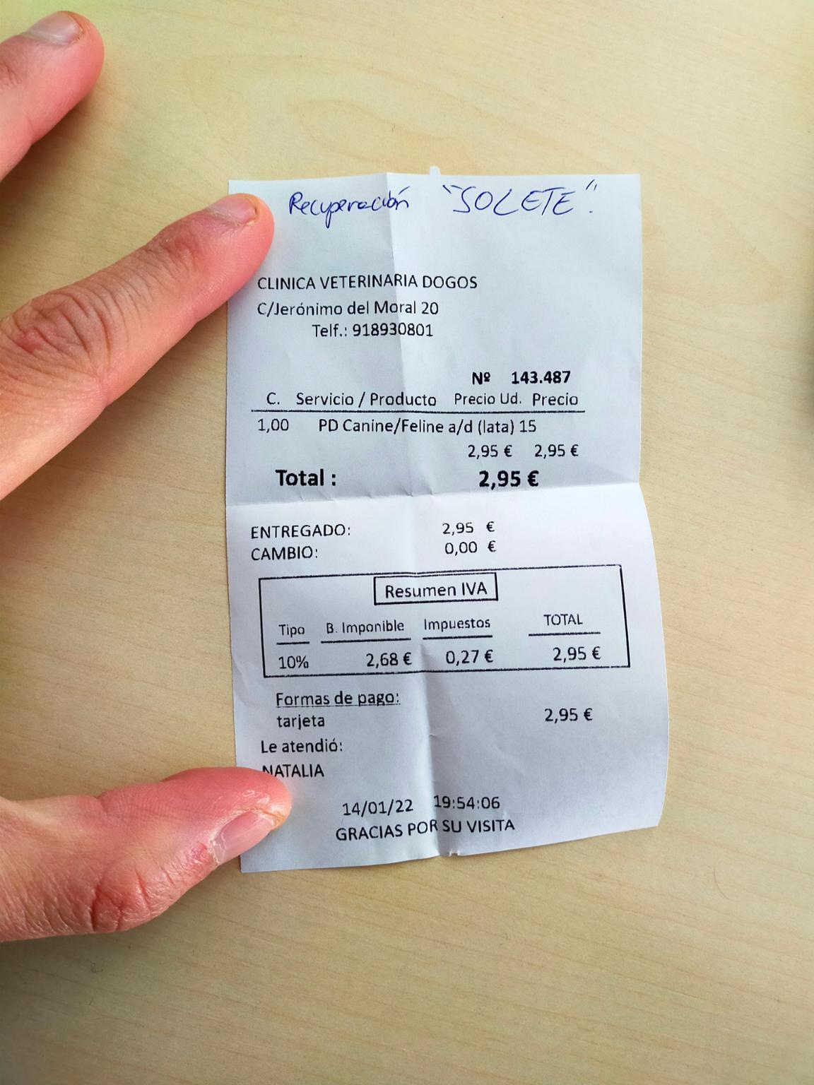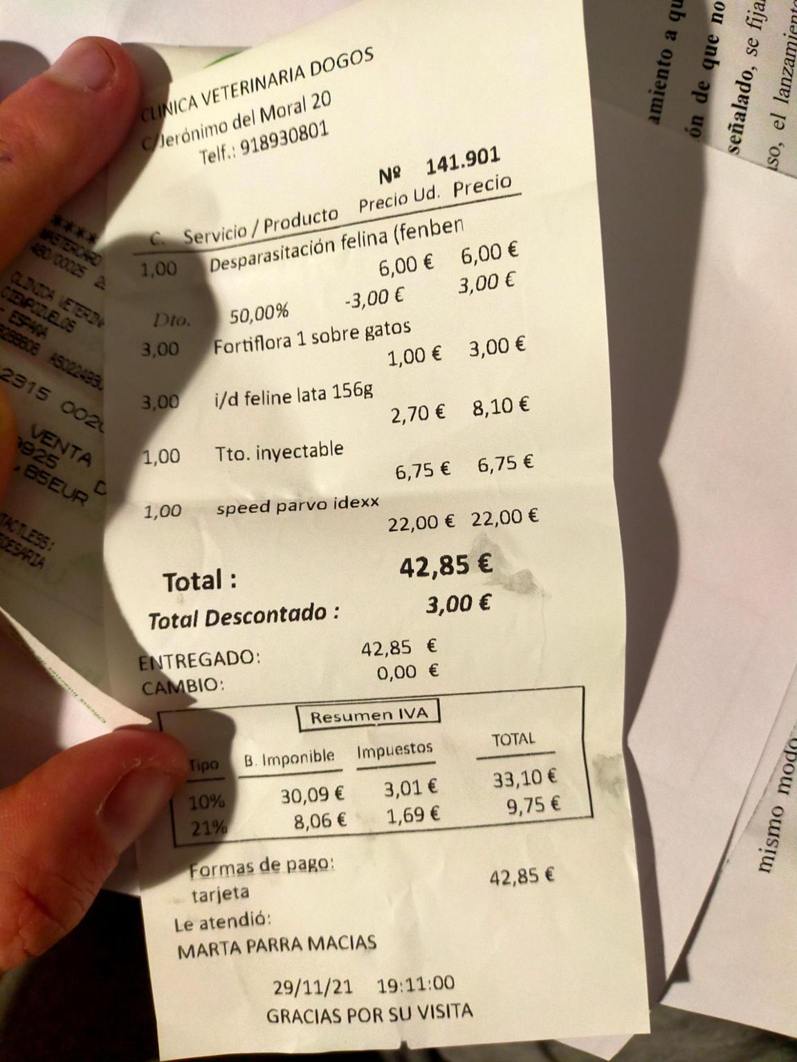 Hola erizos! Aquí os dejamos la factura para el tratamiento de una gatita callejera rescatada. Tienes apenas tres meses. La rescatamos de una muerte segura ya que estaba al lado del cadáver de su mami sin saber qué hacer. Actualmente está sana y salva en una casa de acogida recibiendo muchísimo cariño. Ahora os ponemos la foto de Olivia.